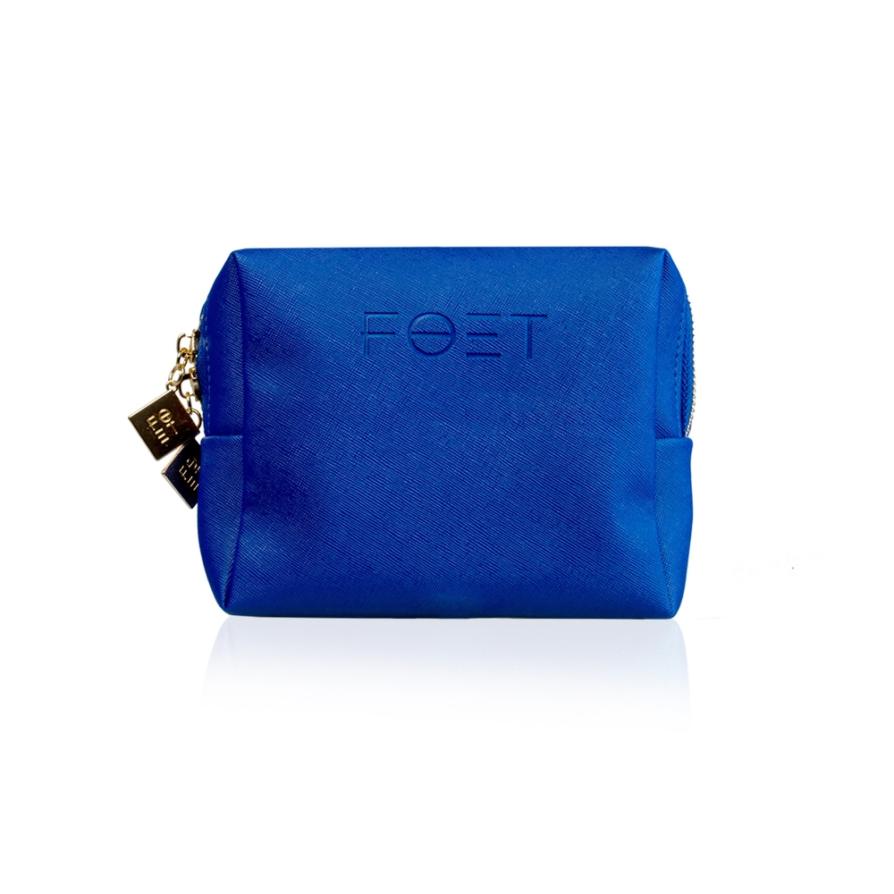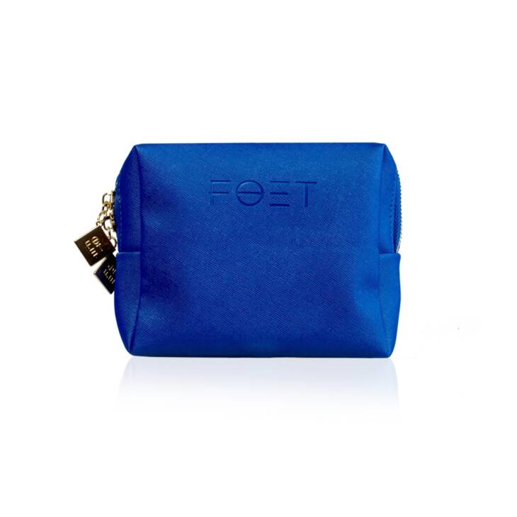 Túi đựng mỹ phẩm FOET có họa tiết màu xanh sáng, khóa kéo đôi mạ vàng và lớp lót màu vàng. Túi mỹ phẩm có thể đựng toàn bộ các sản phẩm FOET. Trong đó có một ngăn riêng để bạn có thể đựng bông tẩy trang hay khăn hoặc giấy tẩy trang. Bạn có thể mang túi đựng mỹ phẩm đi làm, đi tập luyện hoặc du lịch!